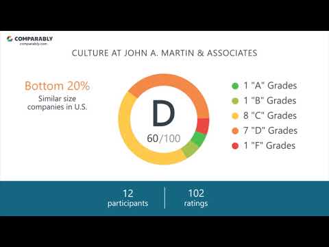 Learn more about the overall culture and interview process at John A. Martin & Associates from current employees. In general, based on 131 ratings and 14 employees, John A. Martin & Associates has an overall culture score of D or 58/100. John A. Martin & Associates is ranked in the Bottom 20% of similar sized companies on Comparably.