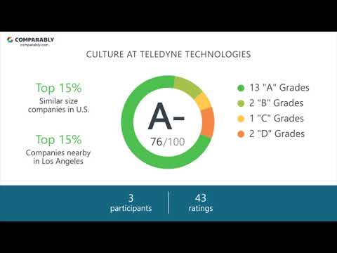 In general, based on 591 ratings and 68 employees, Teledyne Technologies has an overall culture score of C- or 62/100. Teledyne Technologies is ranked in the Bottom 30% of similar sized companies on Comparably. The Operations department are the most satisfied with their experience at Teledyne Technologies. However, Hispanic or Latino employees and the Operations department are the least satisfied.